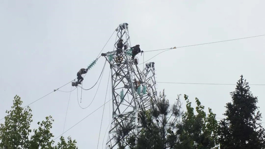 群力煤矿35KV供电线路建设进行时 | 无人机助力铁塔架线