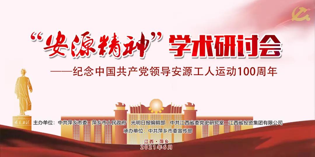 今年是中国共产党成立100周年,也是中国共产党领导安源工人运动100周年。6月20日,由中共萍乡市委、萍乡市人民政府、光明日报编辑部、中共江西省委党史研究室、江西省投资集团有限公司主办,中共萍乡市委宣传部承办的,以“纪念中国共产党领导安源工人运动100周年”为主题的“安源精神”学术研讨会在萍乡市举行。来自全国各地的专家学者齐聚一堂,共同学习习近平总书记关于党的历史的重要论述,共同追忆中国工人运动在安源的峥嵘岁月,共同研讨“安源精神”。
